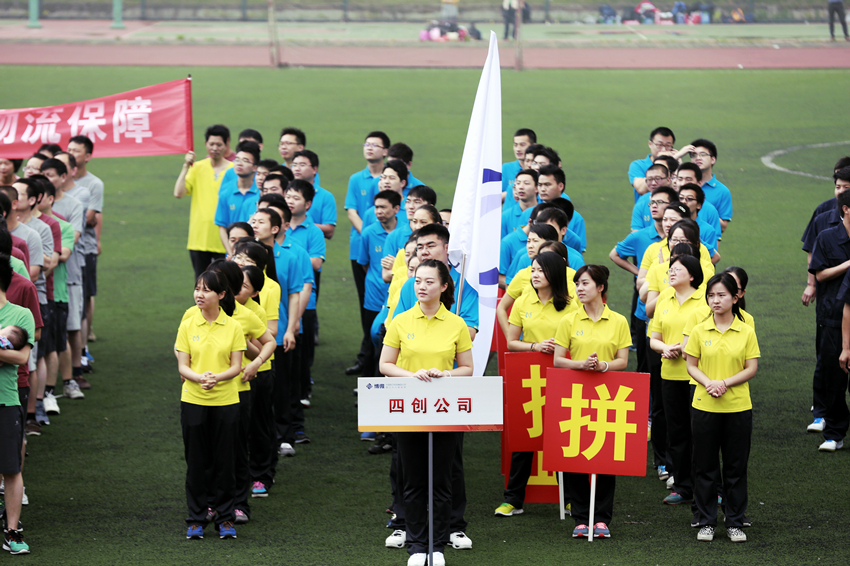 “红色的跑道上,运动员们蓄势待发,只等一声枪响飞驰到终点线;金色的沙池里,纵身跃起的身影留下道道优美的弧线;绿茵的赛场上,齐心协力的各支队伍在一带一路上进行着百亿冲刺,共同成就共绘美好蓝图。”5月9日,38所在新华学院体育场举行第三届“博微杯”职工健身运动会,以全员参与运动的形式纪念建所50周年,推动全民健身活动,倡导“快乐工作、健康生活”。此次运动会,共有来自全所80个部门38支代表队近1500名员工参加。其中,我公司组建2支队伍公司100余名运动员参加本届比赛。