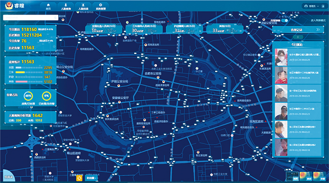 “睿瞳”人像大数据平台集人像采集、存储、分析于一体,提供人像采集、特征提取和人像识别功能,实现对人员的有效管控,面向公安、综治、监所、园区等行业,提供人员管控及多维应用。